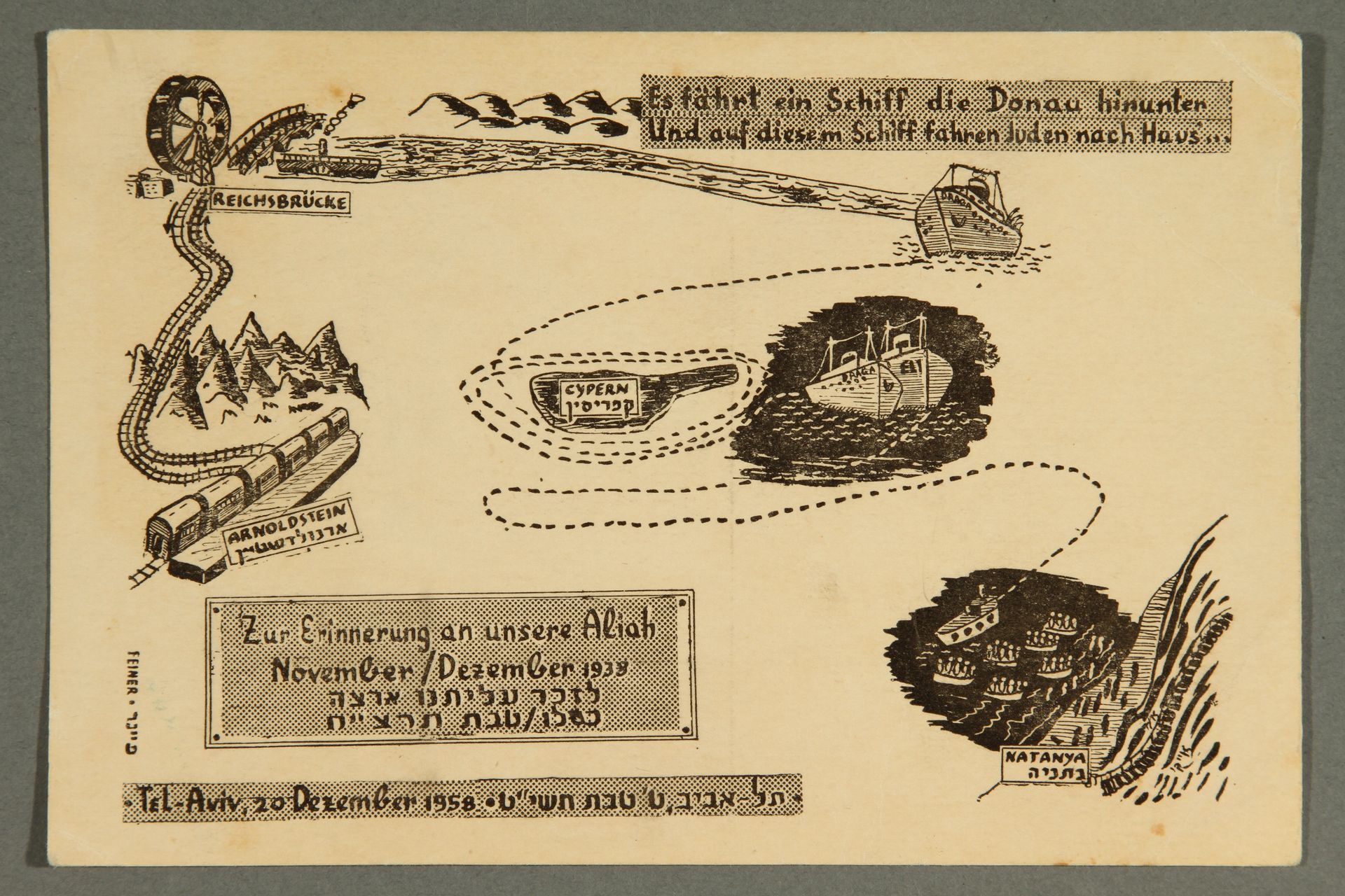 Postcard commemorating the 20th anniversary of Draga and Eli's journey in 1938 - Credits USHMM