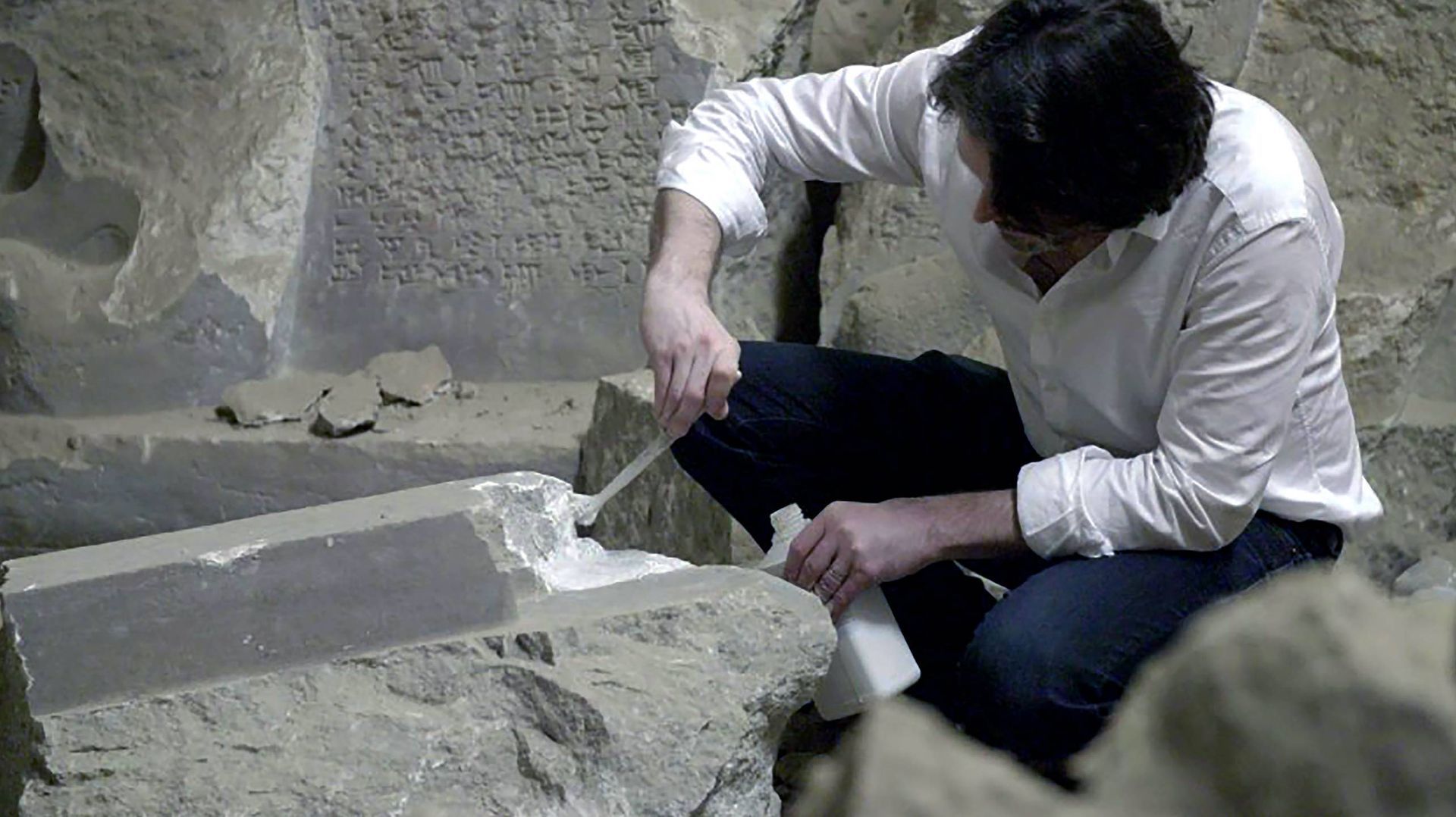 Piers Secunda taking moulds in Mosul Museum ©Piers Secunda