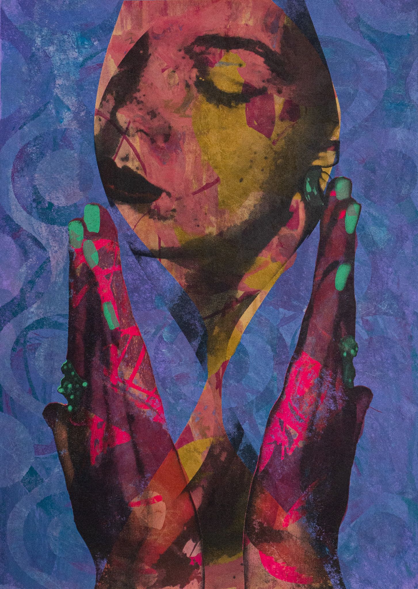 It never left. I grew up with a very artsy family. My mom ran a dance studio since I was two years old and ran it for 20 years. After school I would take eight dance classes a week as a child until I was 18. At the same time her day job was running an art gallery, The Community Folk Art Center in Syracuse, NY. I was surrounded by black art all the time. Faith Ringgold and Carrie Mae Weems had such an influence as their works were always exhibited in the gallery and acquired as well. And then my father was a radio DJ. He teaches African American music and broadcasting now. But when I was a kid he owned two radio stations, so I was surrounded by 90s and 2000s hip hop and R&B 24/7, plus my father ran so many music festivals like Jazz festivals. I saw Arethra Franklin and Smokey Robinson in person. That influence and energy of the community that I grew up with in New York is harder to find in Scotland. It was a pretty electric upbringing I was cemented with. I feel my parents with their work it was inevitable that they were gonna have an artsy kid. They were praying for a kid interested in politics or medicine to help me up for the money. But once I said I'm going to art school they knew. They're super supportive right now and give me so much cheer for this exhibition. My upbringing is such a huge inspiration to my artistic practice and sharing my culture and upbringing in this exhibition and the Scotland community. I am so grateful.