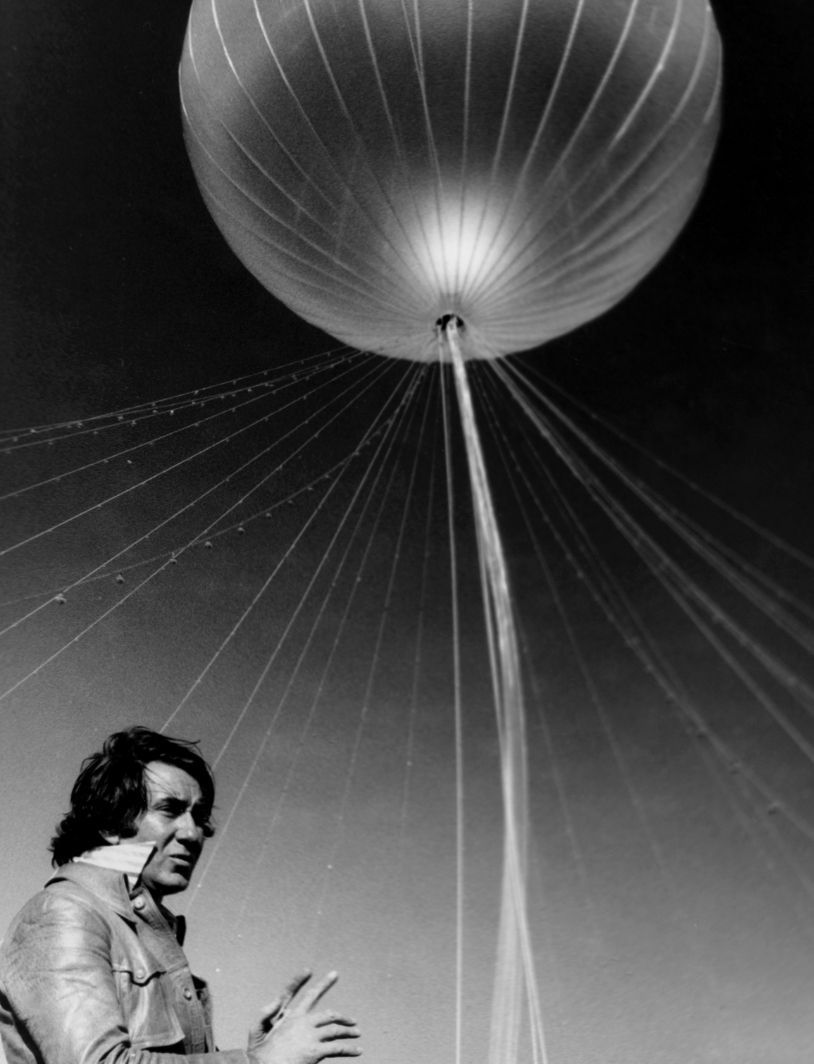 Otto Piene mit Tent II, Sky Event für Lichtspur im Haus der Sonne, WDR3, 1974 © 2024 ProLitteris, Zürich: Otto Piene Estate, Foto: Otto Piene Archiv