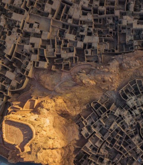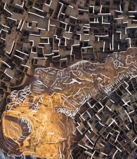 Es gibt eine alte Stadt in AlUla, die fast 600 Jahre alt ist und bis 1983 bewohnt war. Dann wurden die Bewohner vertrieben, weil die Lehmstadt weder über Strom noch über eine gute Kanalisation verfügte. Sie wurden in eine neue Stadt nebenan umgesiedelt. Diese steht heute unter dem Schutz der Unesco. Derzeit läuft ein großes Restaurierungsprojekt, aber Schlamm ist unmöglich zu erhalten; Schlamm an sich ist ein Medium, das sich im Regen auflöst. Es ist eine ständige Skulptur.
