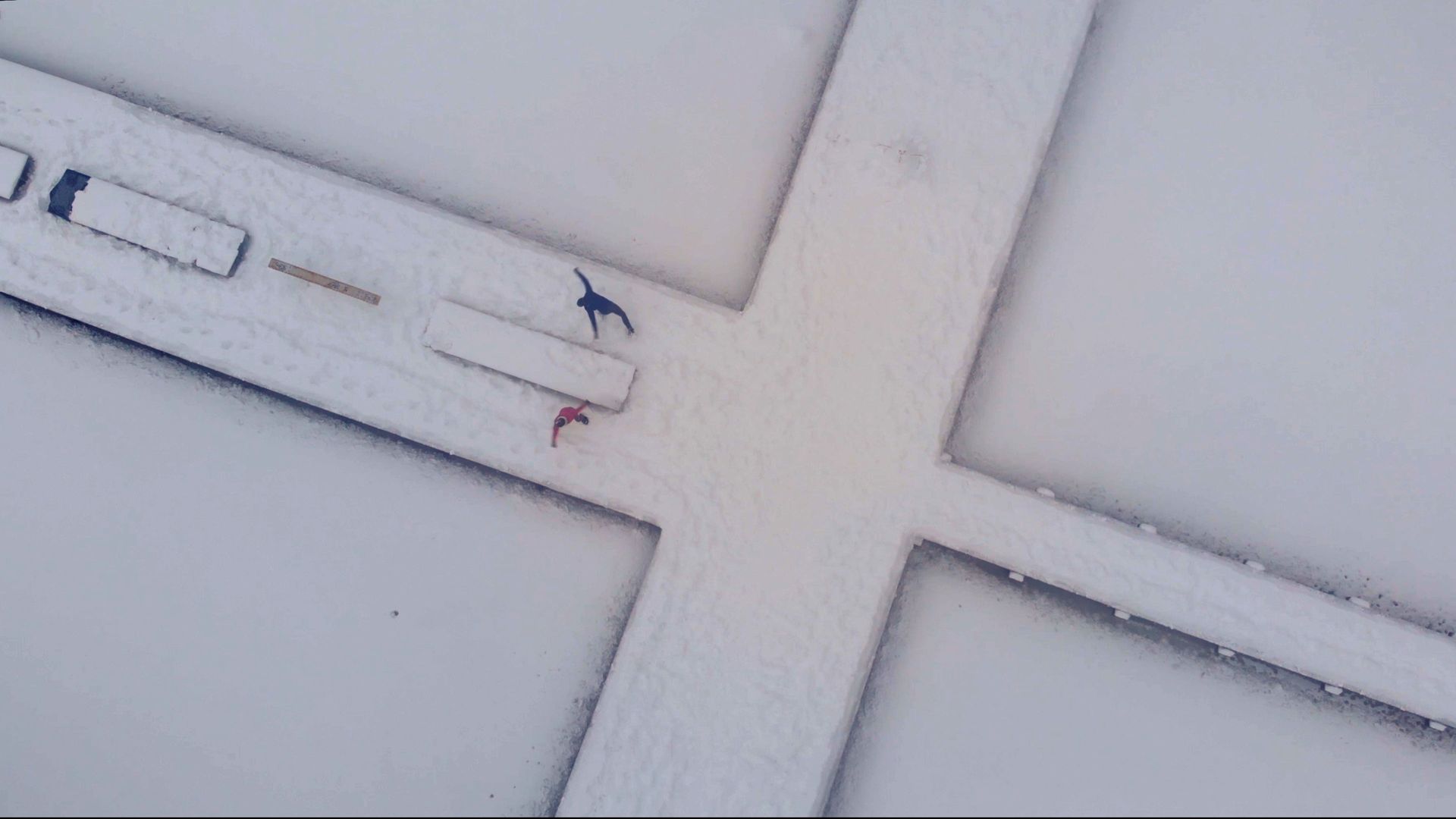 I will be showing the summer and winter episodes of the Love Letters video series. The series, choreographed by Hannah Santistevan with movement artists Sam Crouch and Rebecca Huang, portrays a courtship dance between two people in a labyrinth metropolis over the course of four seasons. They overcome obstacles and physical barriers in order to communicate their affection. The summer episode features two dancers standing on the east and west banks of the Chicago River, sending messages to one another from afar using gestures, against the industrial backdrop of the city’s South Side neighborhood. In the winter episode, we watch from above a playful chase between the dancers on a multi-axis pier during a snowstorm.