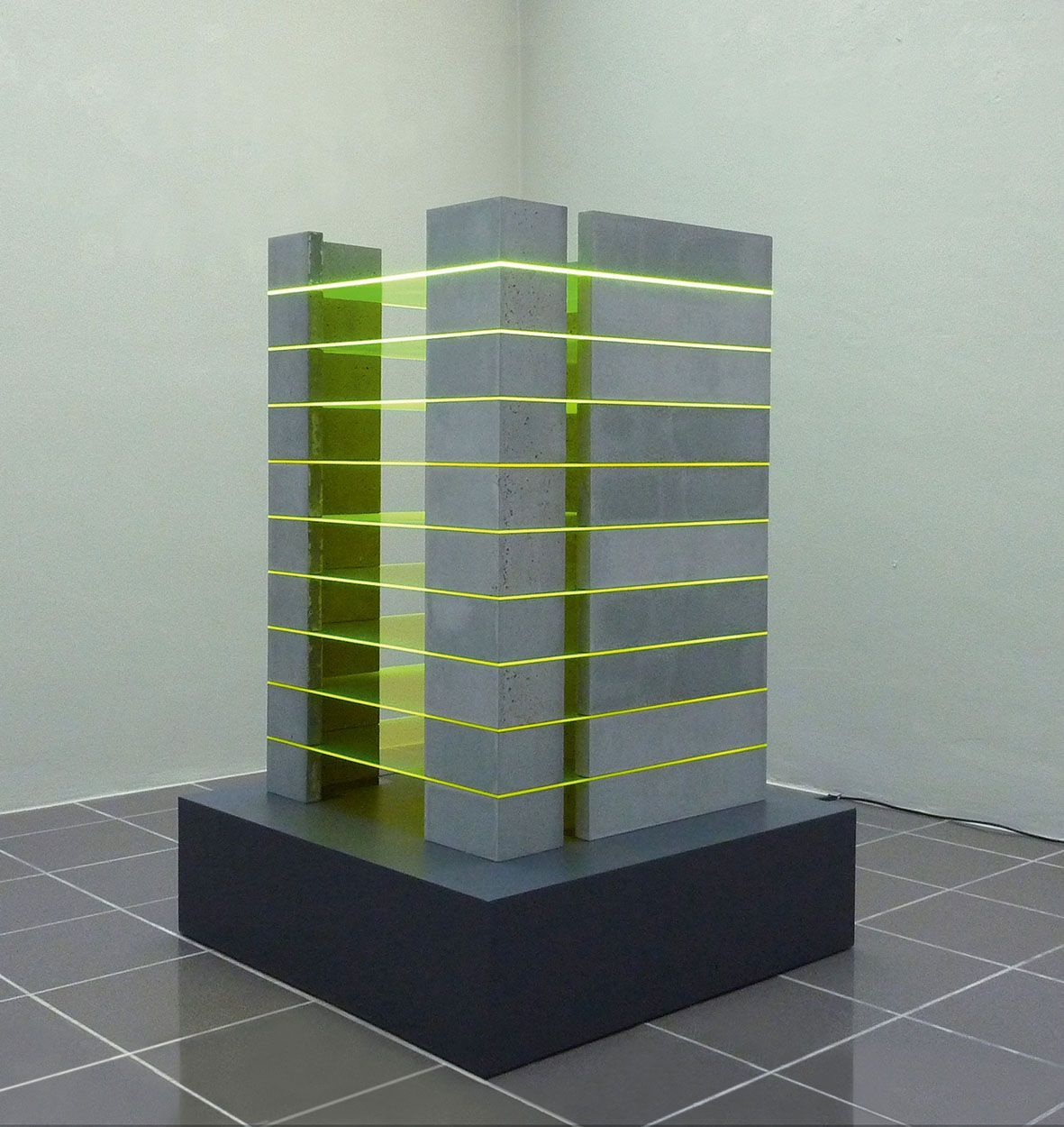 Annette Sauermann Grüner Lichtturm, CDNN, Beton, Acrylglas und Schwarzlicht