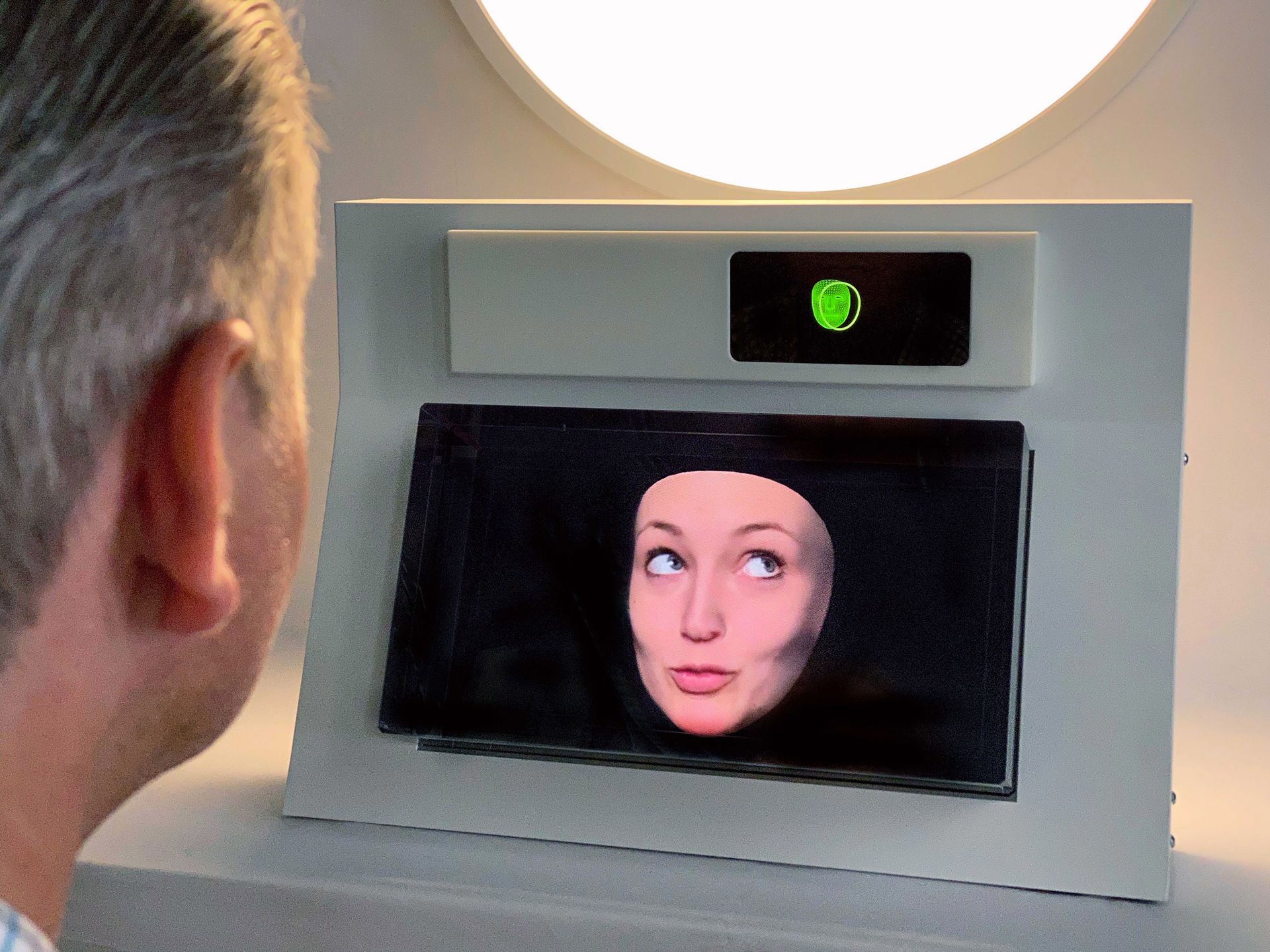 TRUSTAI is about our basic trust. Visitors enter into a conversation with a friendly avatar. A normal, purchasable smartphone, which is part of the installation, collects data from us in the background. The avatar reveals this in the course of the conversation. Many visitors are taken aback by how transparent we are and how carelessly we use our smartphones.