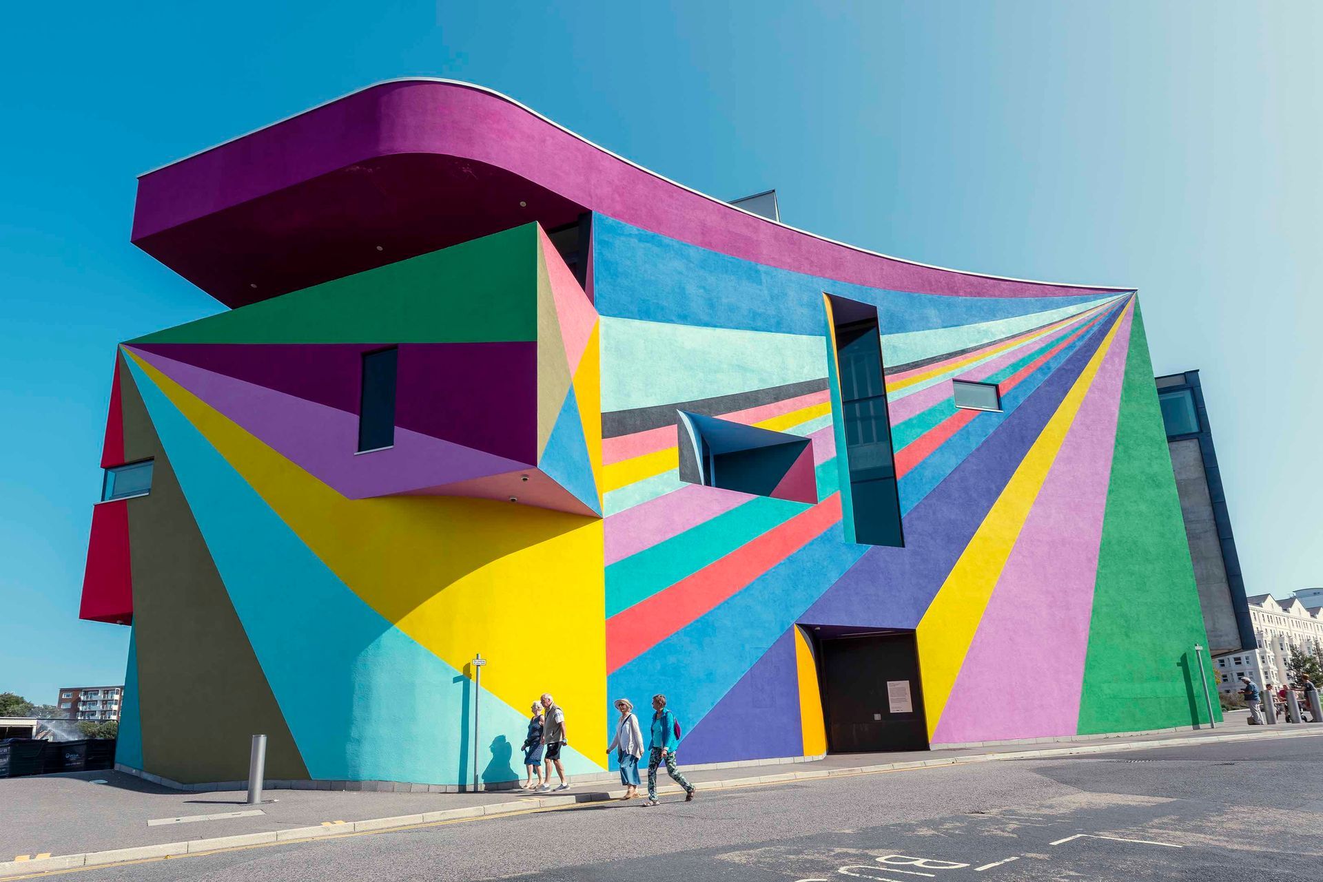 I am most proud of the exterior commission we installed in 2019, which wrapped the entire building in a geometric artwork by German artist Lothar Götz, Dance Diagonal. This completely shifted the relationship the gallery held with the wider community and was shared online internationally millions of times. This change in perception for the organisation and the town resulted in the gallery winning Art Fund Museum of the Year in 2020.