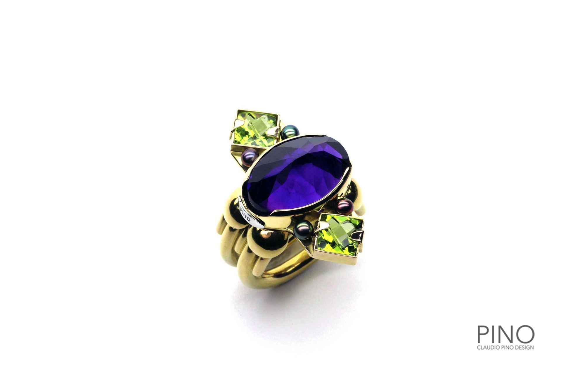 Claudio Pino‘s sculptural and kinetic jewellery creations are unique in the world. The Canadian Montreal based jewellery designer and goldsmith is the sole designer of rings. Each ring is a work of art and each ring is only available once. Since he received his diploma at the École des métiers du Sud-Ouest de Montréal, Canada in 1995, he has been fascinated by the deep relationship between rings and their owners as well as the symbolism and history of rings.