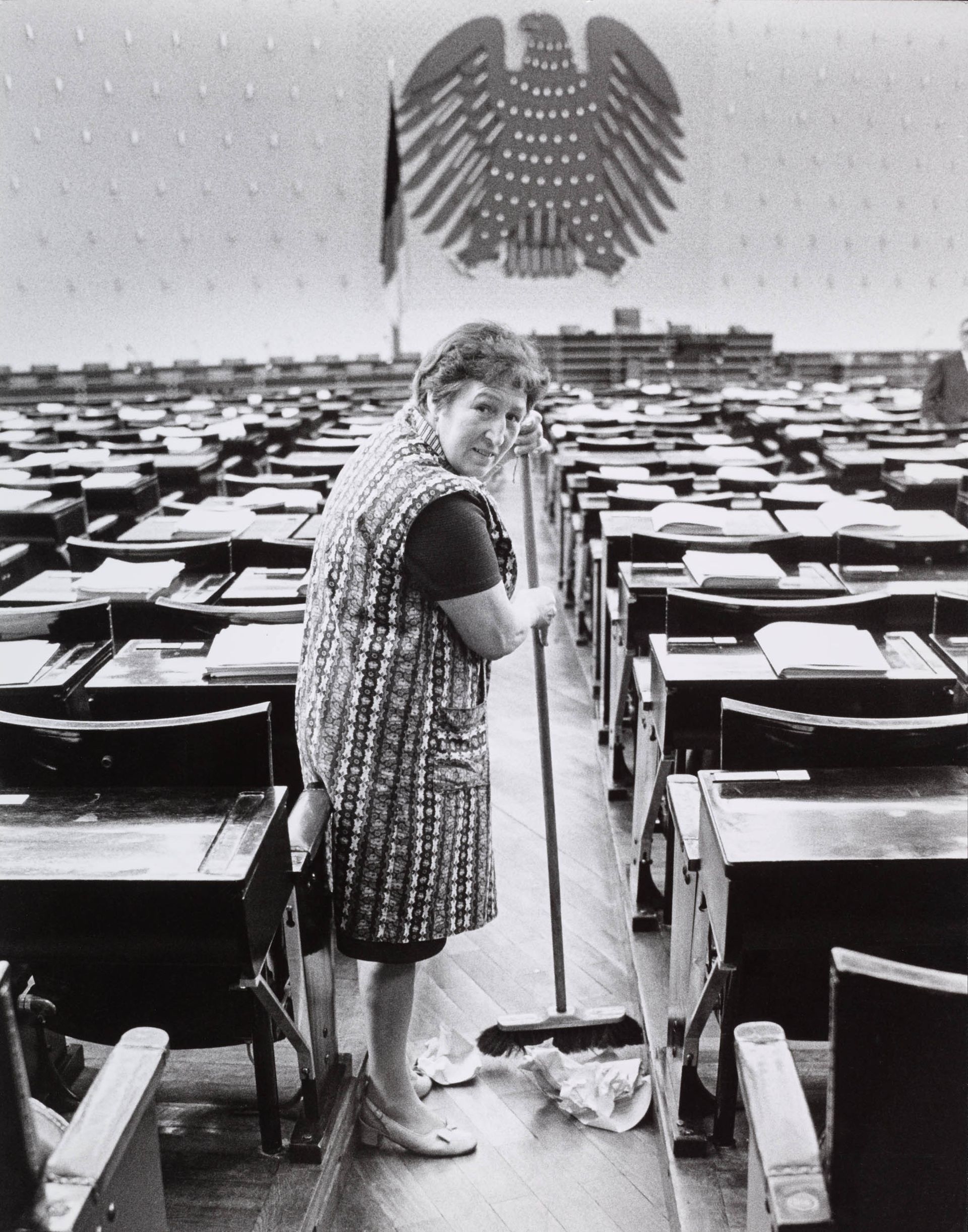Raumpflegerin im Plenarsaal des Deutschen Bundestags, 17. Juni 1971 © J.H.