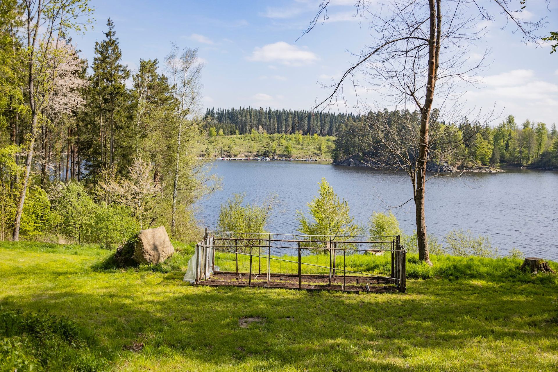 OTV: Next to Augustas Serapinas „Greenhouse from Uzupis“, which is freely accessible until end of October 2023,visitors can also see Lena Henkes „Las Pozas“, permanently installed inside the ruin. And Dominique Knowles's „Ode to Tazz“ installed on a rock overlooking the lake. Both works were part of the first edition of Lichtenfels Sculpture.