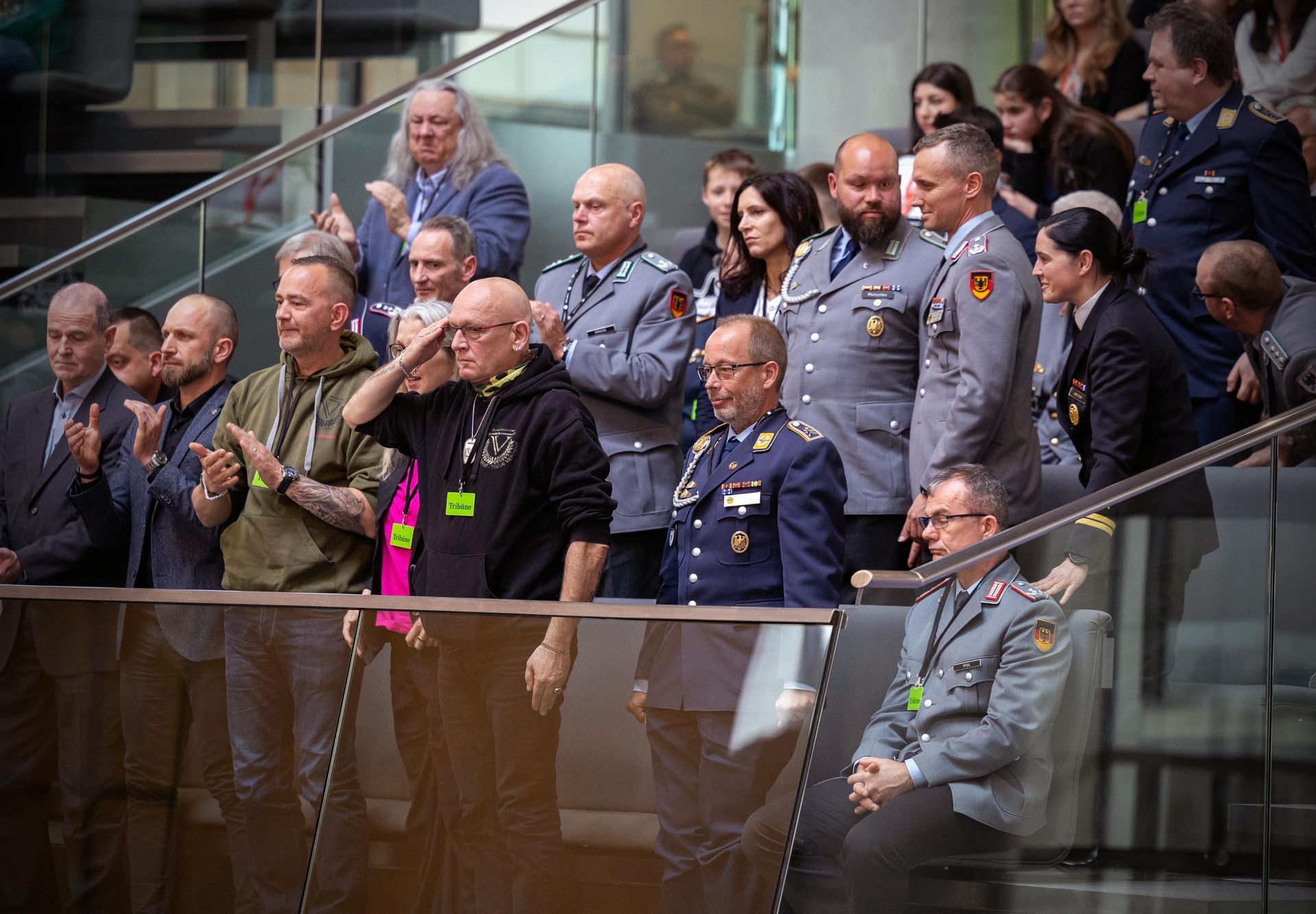Marcel Bohnert with veterans in the gallery of honour at the Bundestags ©Yann Bombeke, DBwV