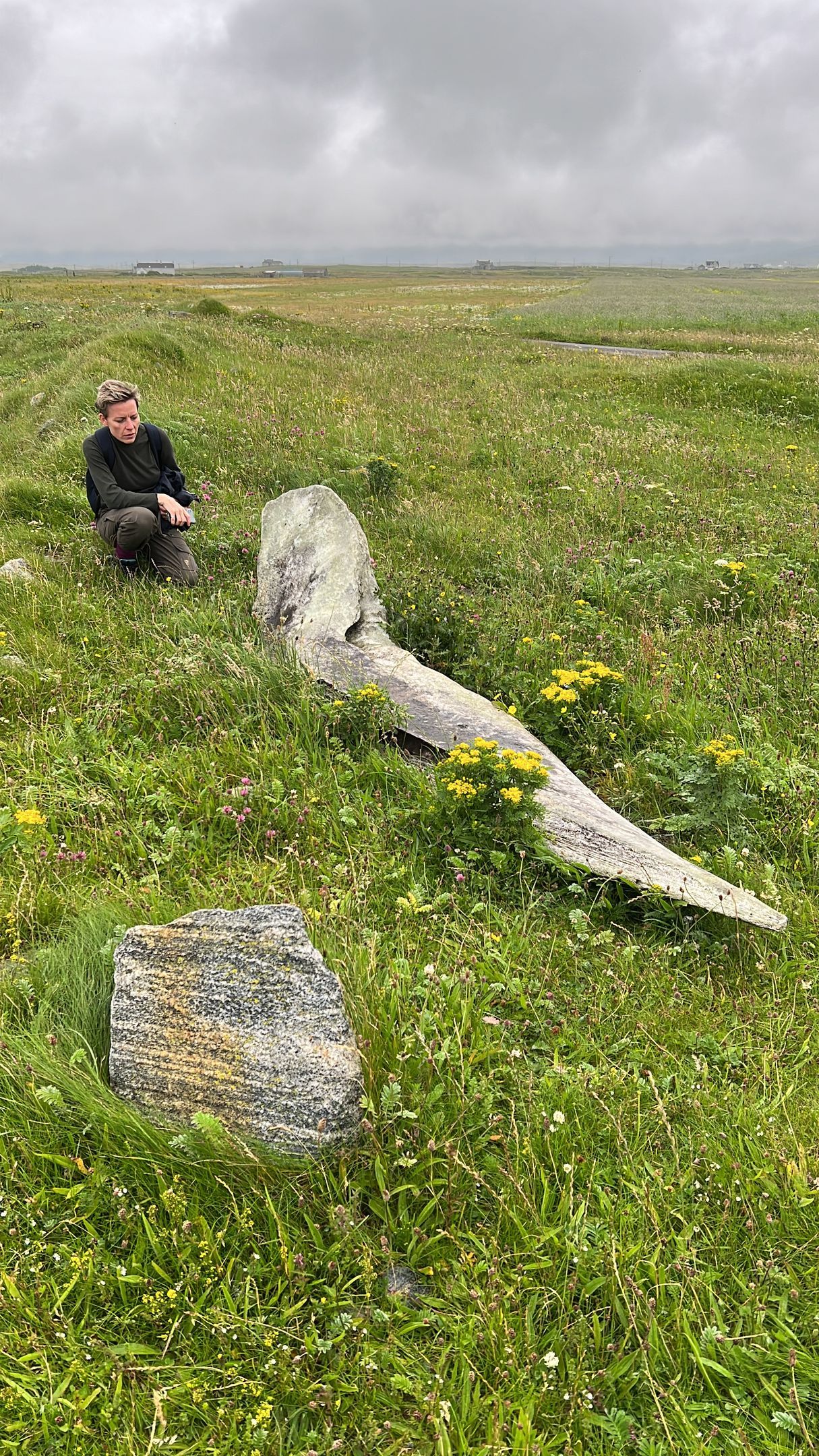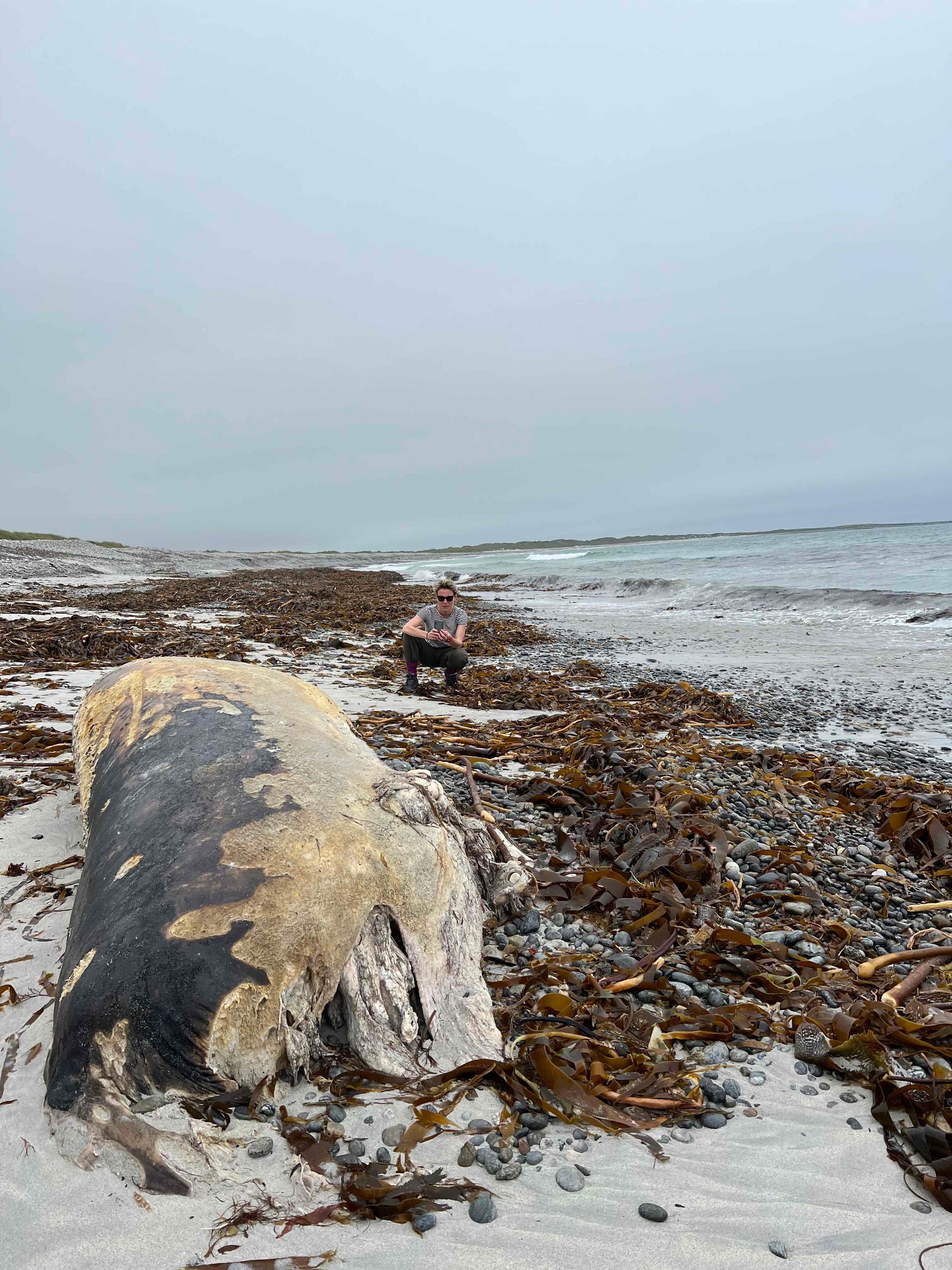 Mella Shaw with beached whale carcass South Uist 2022 ©David Evans