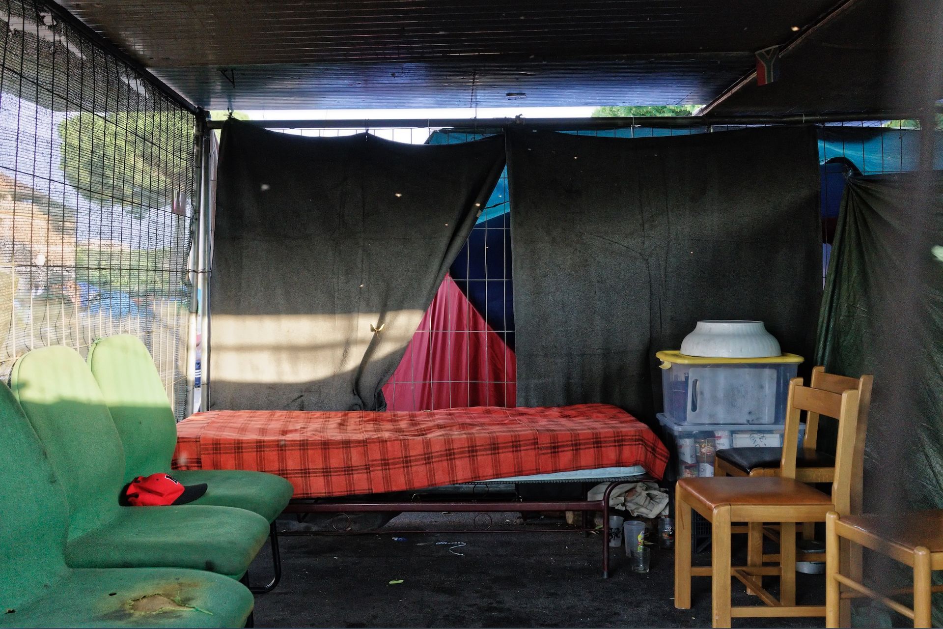 Meine Beschäftigung mit Baobab ist Teil eines umfassenderen Projekts, das die Lebensumstände sowohl von Migranten als auch von Italienern in verlassenen Gebäuden und Räumen in Rom und seinen Vorstädten beleuchtet. Die Kontaktpunkte für dieses Projekt begannen mit einer Einladung, Bilder aus der Riforma-Serie im Museo dell'Altro e dell'Altrove Metropoliz, kurz M.A.A.M., zu installieren. Das M.A.A.M. ist Roms drittgrößtes Museum für zeitgenössische Kunst, das jeden Samstag für die Öffentlichkeit zugänglich ist und in den großen offenen Räumen einer verlassenen Fleischverarbeitungsanlage und Salumeria untergebracht ist - Räume, die sonst nicht für häusliche Zwecke genutzt werden könnten. Dabei hatten wir das Privileg, viele der Bewohner und politischen Organisatoren von Metropoliz kennenzulernen, die so freundlich waren, uns Zugang zu ihren Wohnräumen zu gewähren und uns mit Akteuren ähnlicher Gemeinschaften in ganz Rom, einschließlich Baobab, bekannt zu machen.