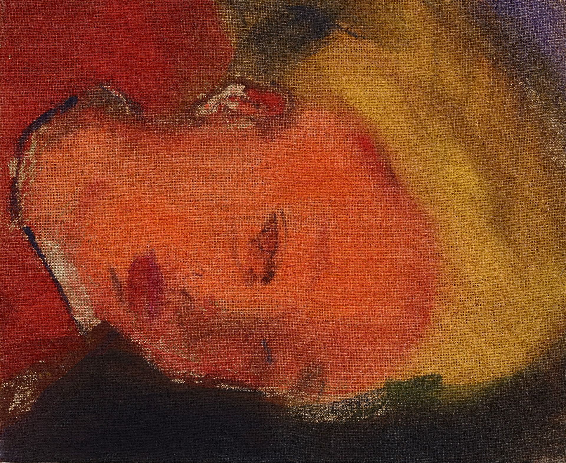 Leiko Ikemura, Reclining Face Orange, 2008, Tempera Leinen, 50 x 60 cm, © the artist, Courtesy Miettinen Collection